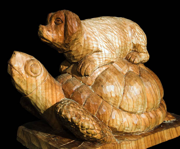 | Auf dem gemeinsamen Weg zum Stadtpark entdeckt Tammy zwei Schildkröten und versucht auf einer von ihnen zu reiten. Sie wundert sich, dass sie sich nicht rühren... |