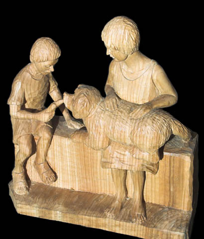 | Auf dem Heimweg - die Drei sind fast schon zu Hause - betätigt sich Tommy noch schnell nebenbei als Lebensretter und wetzt damit auf einen Schlag sämtliche Scharten aus. Alle freuen sich... |