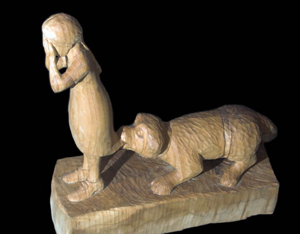 | Tommy muss mal ganz dringend für kleine Jungs und erleichtert sich am Sockel eines Hinweisschildes... |