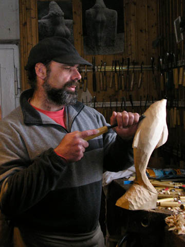 | Zuerst in Holz, nach kurzer Zeit aber auch in Stein. In letzter Zeit intensive Beschäftigung mit dem Zeichnen, vor allem Portraits mit Farbstiften. |